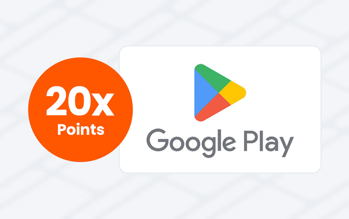 Earn 20x Everyday Rewards points per dollar spent on Google Play digital gift cards when you buy them on the Everyday Gifting website or in the Everyday Rewards app.