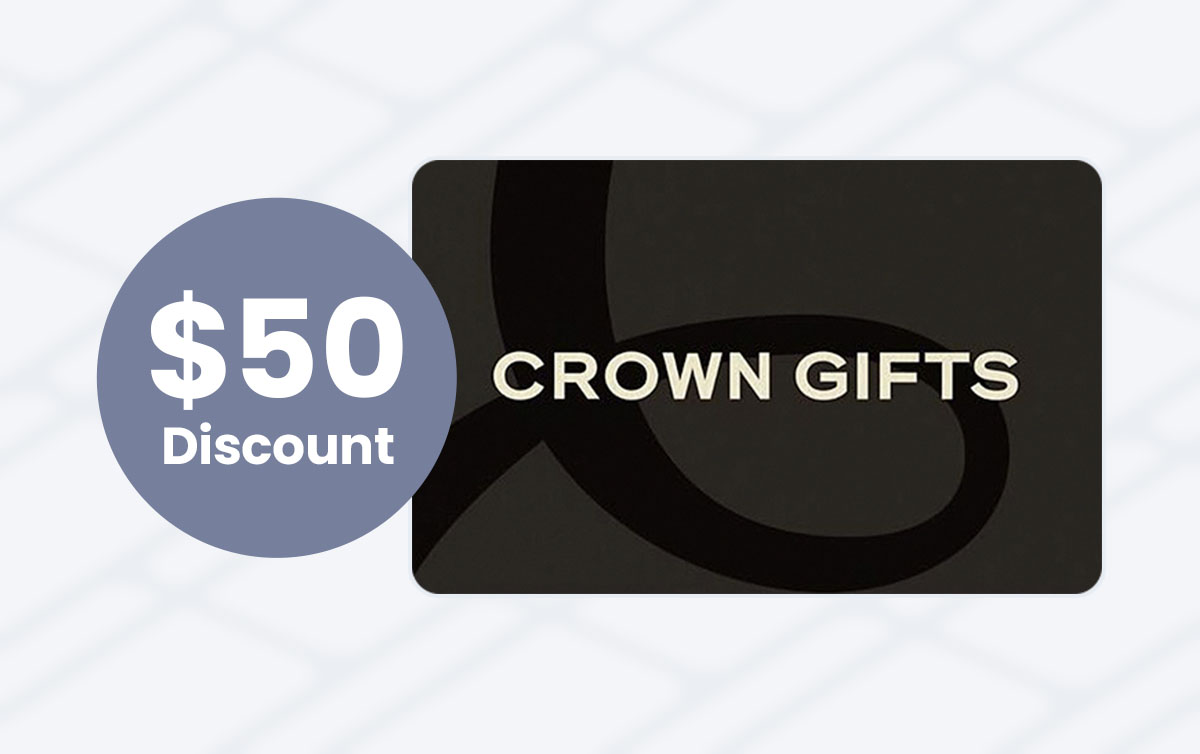 Save $50 when you purchase a $400 Crown Gifts digital gift card on the Crown Gifts website.
